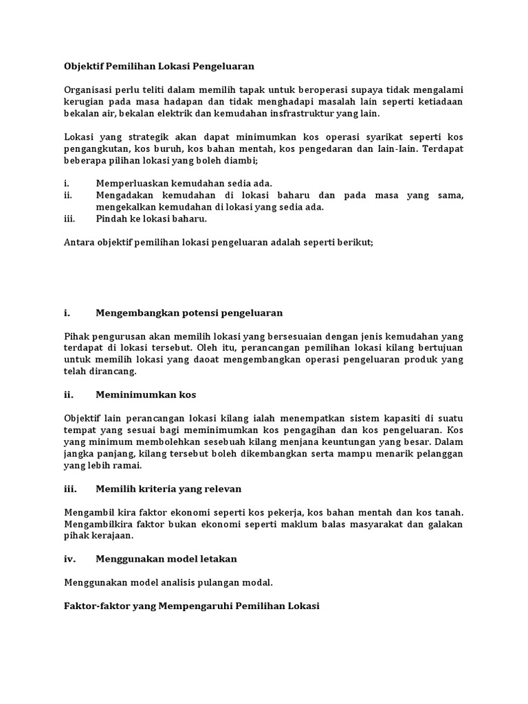 Objektif Pemilihan Lokasi Pengeluaran Pdf